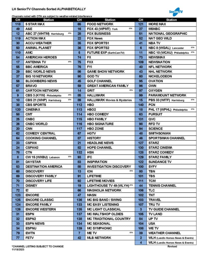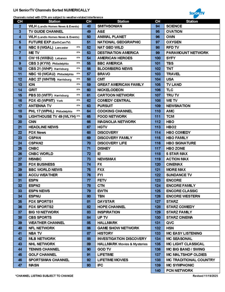 Resident TV Channels